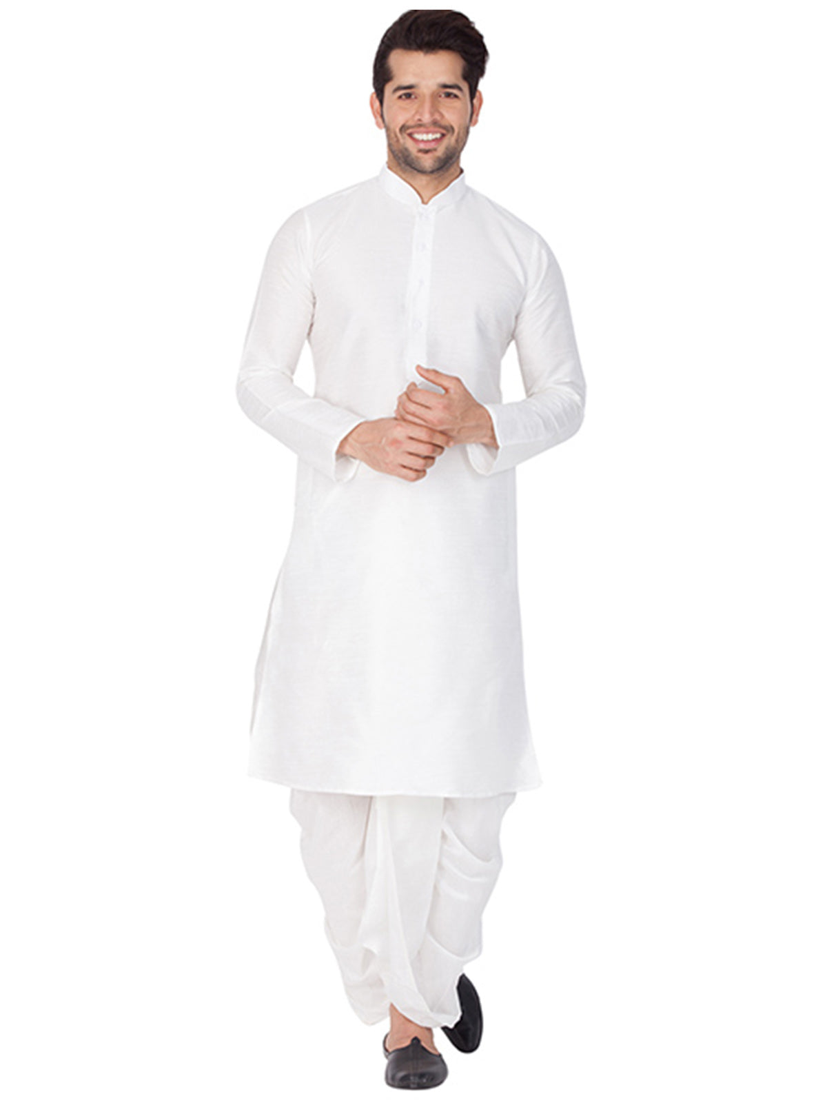 Ensemble pyjama Kurta uni en soie Banglori blanc pour hommes