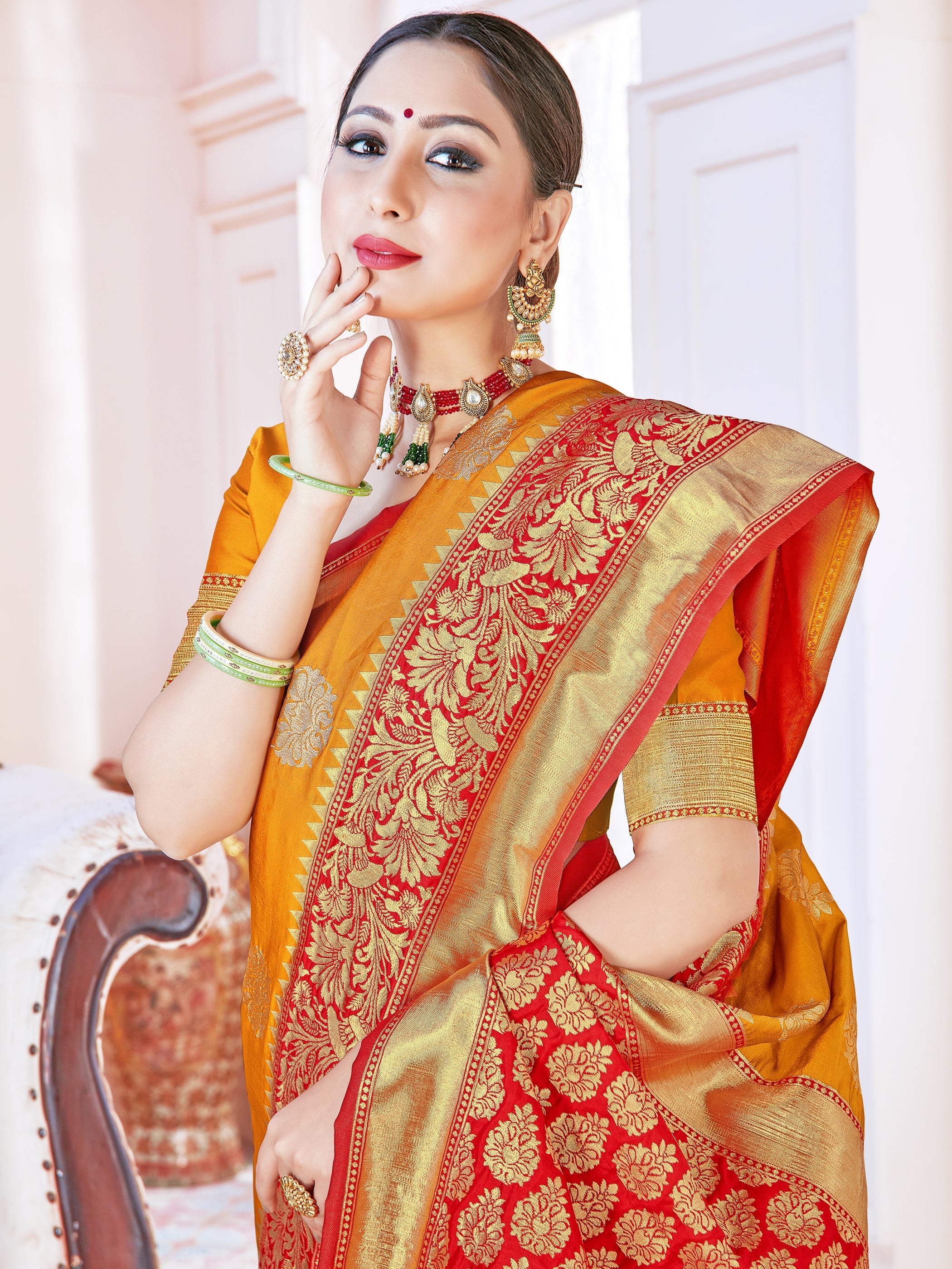 Mustard Banarasi Art Silk Woven Saree