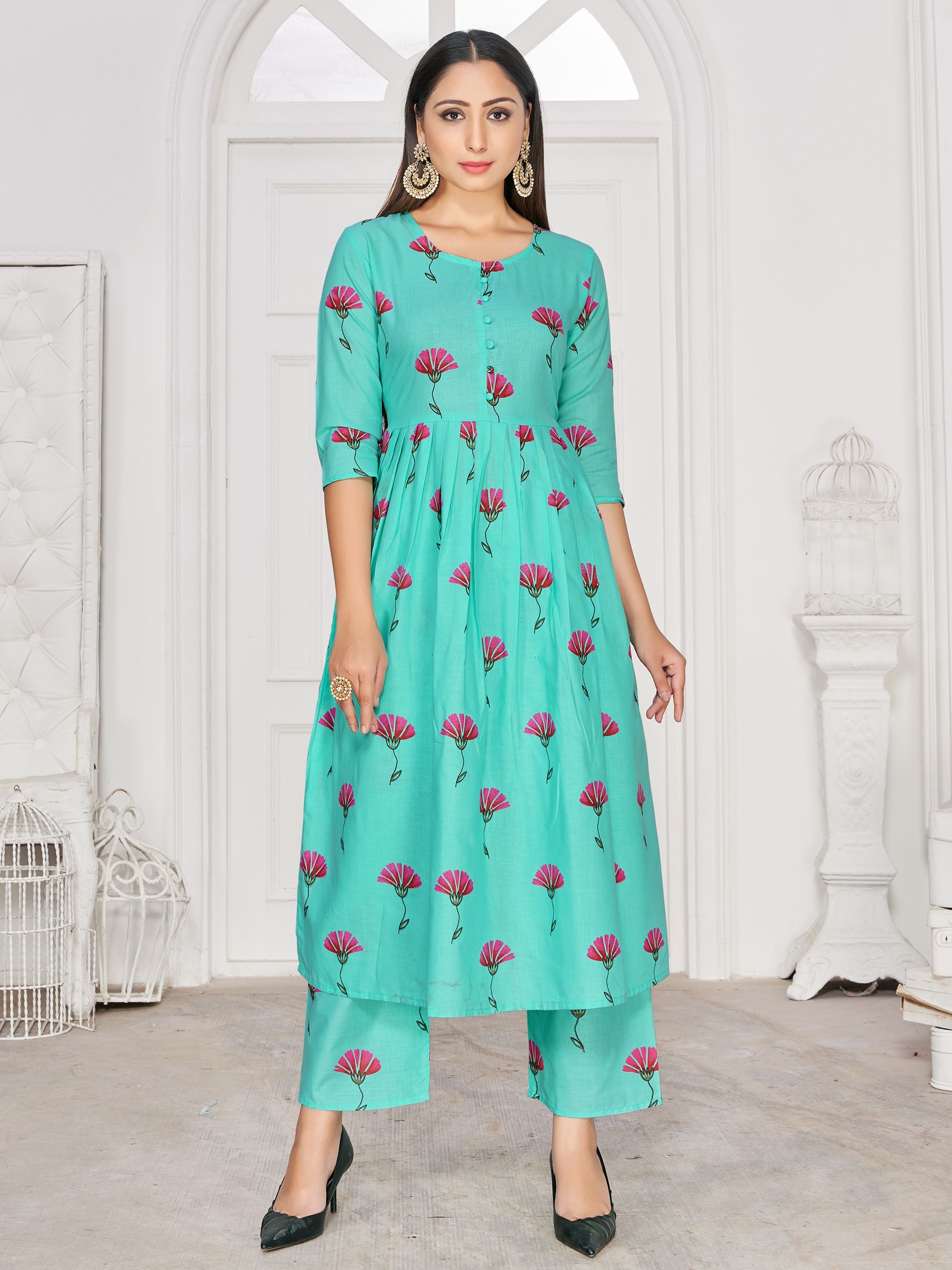 Robe Kurti à imprimé bloc de rayonne bleu ciel