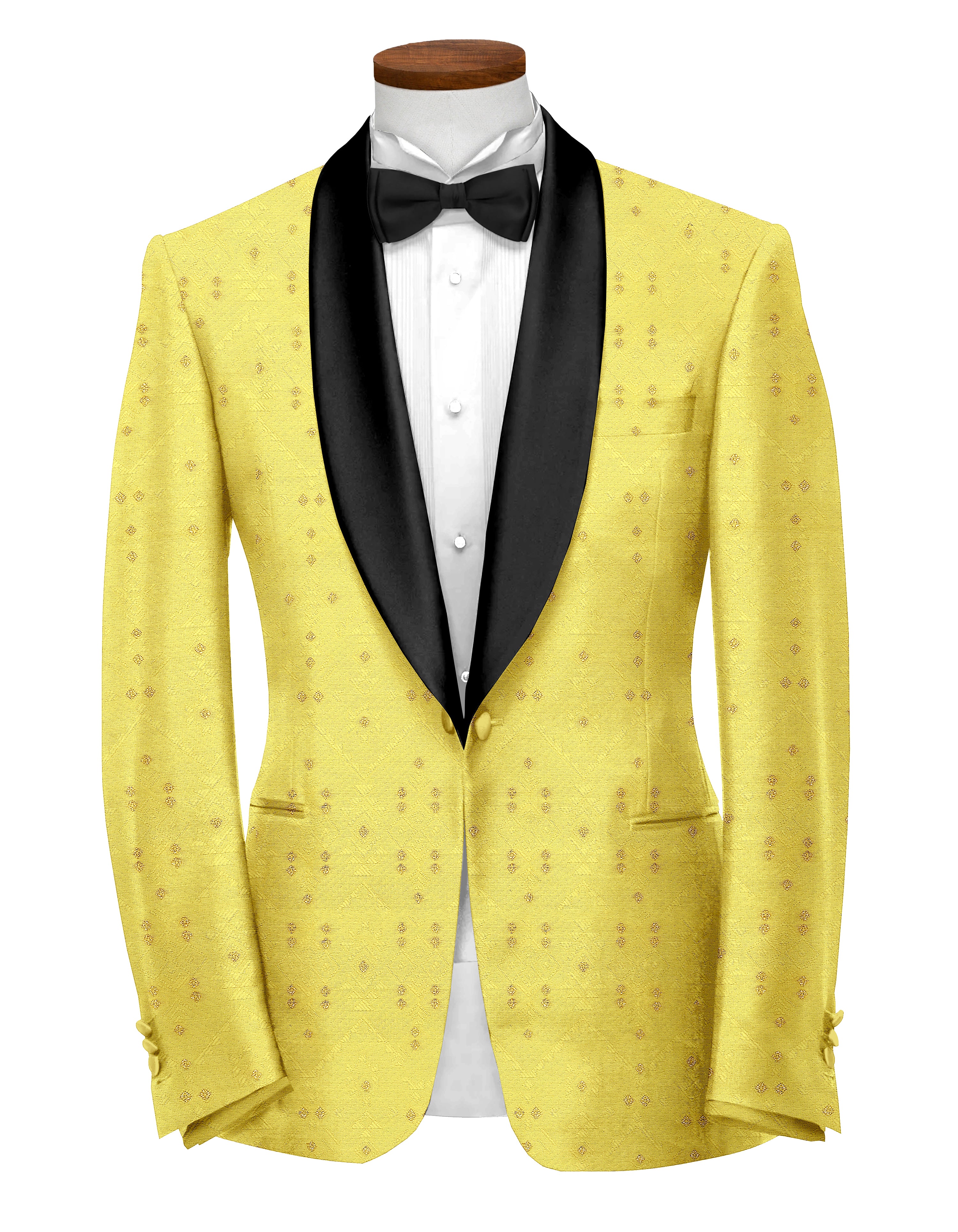 Dull Yellow Men's Party Jacquard Suit Jacket Slim Fit Blazer