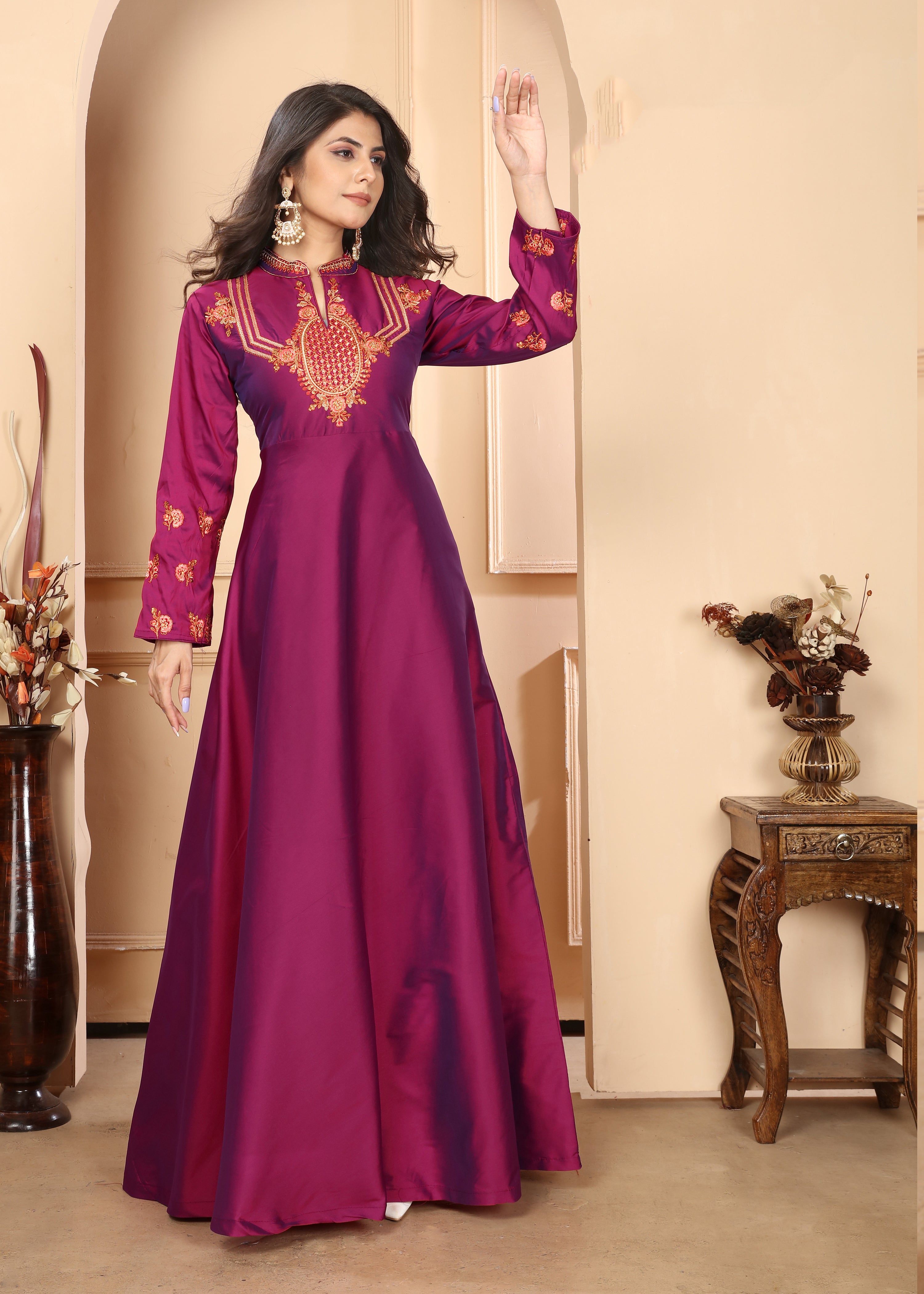 Purple Silk Embroidery Ready to Wear Gown